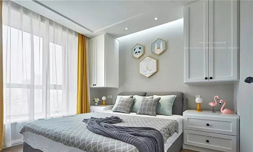 清新淡雅的綠色系搭配在一起雖然很漂亮,但是如果每一個(gè)房間都選用這樣的色彩當(dāng)然也是不行的,這樣很容易產(chǎn)生視覺疲勞,所以主臥室選用淡灰色來進(jìn)行色彩中和。走到臥室看到淡灰色的背景墻,讓人們感覺煥然一新,從跳躍活潑的色彩世界來到淡雅的空間,讓人感覺很安定很踏實(shí)。