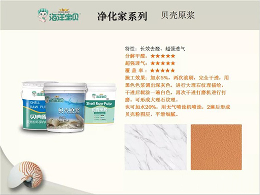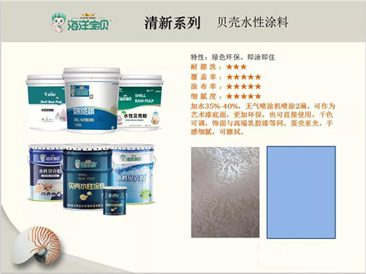 在國內(nèi),隨著涂料研發(fā)技術(shù)的進(jìn)步,海洋寶貝貝殼粉異軍突起。海洋寶貝貝殼粉是以水為溶劑的內(nèi)墻涂料,采用天然貝殼為原料,經(jīng)過清洗、低溫煅燒、研磨等多種工藝制成。