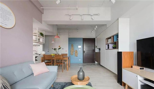 小戶型也是十分適合打造浪漫氛圍的戶型,進入客廳我們看到的仍然是北歐風(fēng)的簡約氣質(zhì),在這里我們看到浪漫與簡約毫不沖突??蛷d沙發(fā)背景墻選擇用貝殼粉藕粉色進行裝飾,貝殼粉細(xì)膩的質(zhì)感讓整個裝修看起來更加高級。