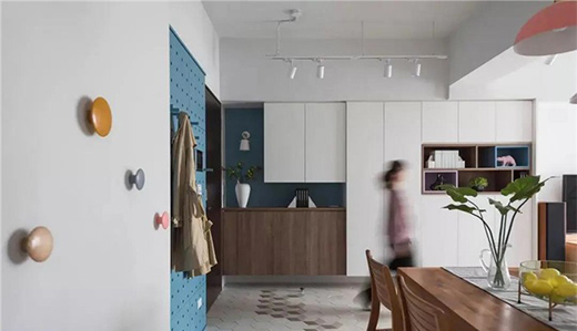 北歐風(fēng)格的裝修當(dāng)然少不了貝殼粉淺灰色,玄關(guān)的小面積墻面我們用灰色進行裝飾?;疑迷谶@里增加了整個空間的設(shè)計感,并且它與藕粉色的浪漫氣質(zhì)完全不沖突。