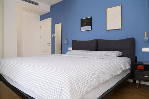 走進(jìn)臥室會(huì)給人眼前一亮,因?yàn)榕P室的床頭背景墻選用藍(lán)色貝殼粉來裝飾。藍(lán)色除了可以提升裝修氣質(zhì)之外,還能夠起到緩解緊張情緒的作用。因此臥室選用藍(lán)色非常適合,除了讓臥室的裝修看起來非常養(yǎng)眼之外,還可以保證每天都有好睡眠哦!