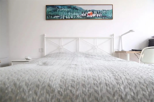 次臥沒做過多的裝飾,墻面用了簡(jiǎn)簡(jiǎn)單單的白色,搭配白色鐵藝床具,整體看起來時(shí)尚干凈。