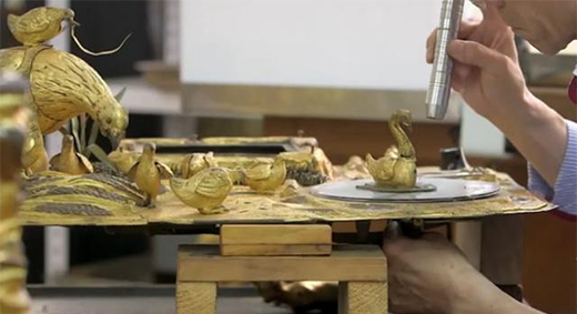 今天,因為《我在故宮修文物》的播出,鐘表館成了故宮博物院之中最受歡迎的展廳之一。它們是那個時代機械技術(shù)的偉大成就,也是中國清朝宮廷藝術(shù)的集大成者。清朝皇帝們將這些鐘表和皇權(quán)、天人感應結(jié)合在一起,表達著"惜時"和"勤政"的觀念。歷經(jīng)了一百多年,這些鐘表依舊在記錄著時間的流逝,因為極為珍貴,它們被保存得很好,里面的鳥還會鳴叫,人還會舞蹈,花朵依舊會開放,就像他們的主人依舊在注視他們一樣。