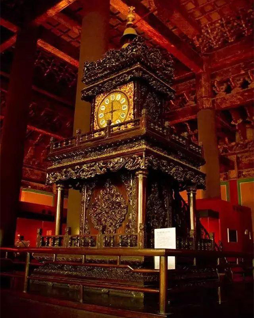 (故宮鐘表館·硬木雕花樓式自鳴鐘)