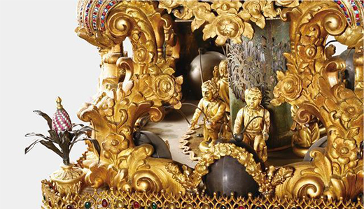 康熙、雍正、乾隆三人對鐘表的喜愛程度一代強于一代。乾隆除了是一位帝王,也是頗有成就的鑒賞家和藝術(shù)家。和前兩代帝王不同,乾隆想要在鐘表上追求的是藝術(shù)的價值,他將鐘表當作一件奇巧奢侈的器物來玩賞。