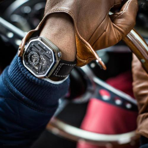 喜歡個性鮮明一點的風(fēng)格的表友看這里!這款艾戈勒大爆炸系列設(shè)計上頗有創(chuàng)意,采用多層次鏤空盤面設(shè)計,時針采用了24小時制的雙刻度小表盤,分針位于刻度之下與6點位車輪形小秒盤各據(jù)一方,顛覆傳統(tǒng)機械腕表局限。透過盤面還可以看到里面機芯轉(zhuǎn)動,所謂芯之所動。外觀采用八邊形表盤設(shè)計,鏡面拋光打磨,呈現(xiàn)出耀眼光澤。特設(shè)位于5點位的棱形表冠,避免與手腕的抵觸。佩戴毫無負(fù)擔(dān),設(shè)計上蒸汽朋克風(fēng),外表剛硬,44mm的大表盤直徑特別適合杰森斯坦森這樣猛男戴,彰顯出放蕩不羈的自由心態(tài)。這款擁有極具辨識度的盤面設(shè)計,藝術(shù)性空間立體感帶來強烈的視覺震撼,讓人過目不忘。