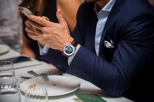 這款星夜腕表擁有全景月相表盤,靈感來自于梵高的作品《星夜》,將優(yōu)雅神秘的自然宇宙之美自然流露。梵高在《星夜》中瘋狂流動的筆觸,此時此刻化為一副別致的立體畫,傲然展現(xiàn)于表盤之上。與之相鄰的精致雕刻的銀色月面,凹凸有致,將月球的真實景象美妙呈現(xiàn)。再配以鍍鉑鋼釘&刻度釘,簡約純粹,線條利索。浩瀚宇宙的神秘之美與時間的奧秘皆凝聚于腕間這一方天地,明月星辰,觸手可及。小編不由的想到“人有悲歡離合 月有陰晴圓缺”,沒錯,這就是人生。賞天下萬里云霧,品五味雜陳人生。