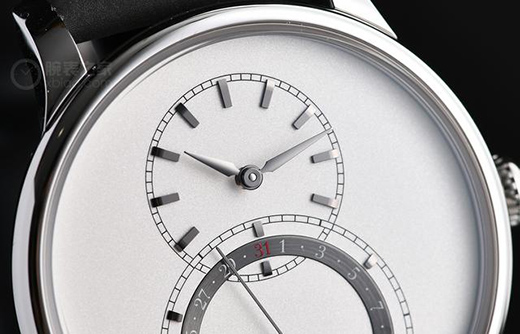 表盤布局是使雅克德羅大秒針腕表脫穎而出的關(guān)鍵,圓形表盤內(nèi)部呈“8字”造型,暗藏雅克德羅品牌深厚的歷史底蘊(yùn)。6點(diǎn)鐘位置設(shè)有兩個(gè)同心表盤,內(nèi)部的環(huán)形日期顯示窗口由末端紅色的指針指示,而外盤是小秒盤,與12點(diǎn)位置的時(shí)分顯示盤對(duì)稱分布,結(jié)構(gòu)合理。