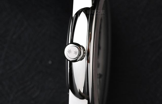 表盤一側(cè)設(shè)有表冠,表冠上方鐫刻的是雅克德羅經(jīng)典的雙星標(biāo)識(shí),辨識(shí)度很高,四周還有凹凸不平的防滑紋理,便于調(diào)校。