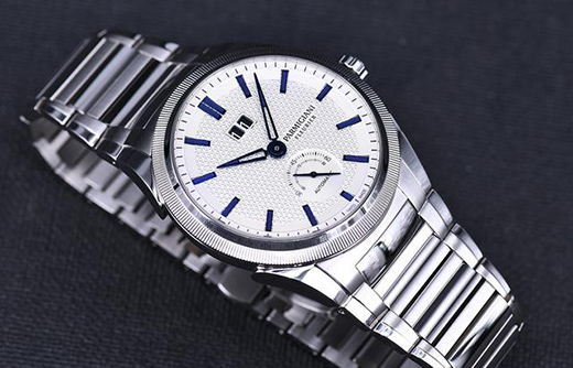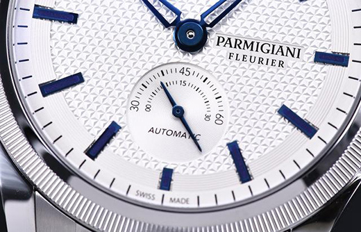 帕瑪強(qiáng)尼為通達(dá)系列腕表配備了經(jīng)傳統(tǒng)工藝“Clou triangulaire”璣鏤紋裝飾的表盤,細(xì)節(jié)設(shè)計(jì)之處十分到位,實(shí)物非常有質(zhì)感,較于其他品牌常見的簡潔表款更顯不凡特質(zhì)。再以白色色調(diào)搭配,整體營造出典雅高貴的氛圍。