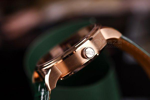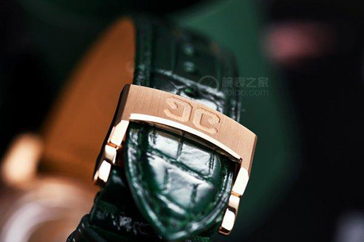 腕表搭配的是一條綠色路易斯安那鱷魚皮表帶,和腕表整體的色調(diào)比較貼合,所以看上去更顯和諧。