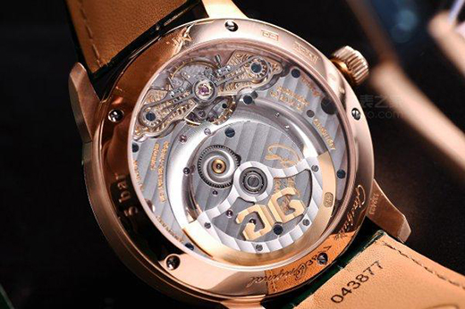 表冠位于腕表的另一側(cè),上面鐫刻有格拉蘇蒂原創(chuàng)經(jīng)典的“雙G”標(biāo)識。