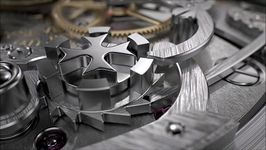 ▲由導(dǎo)柱輪加上水平離合機制來控制機芯的計時動作,確保其計算時間精準而穩(wěn)定。