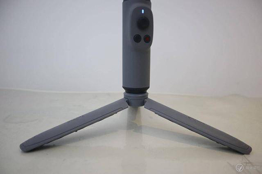 云臺拿在手上其實(shí)對于手大的朋友有點(diǎn)短,可以將三腳架安裝在下面,手握三腳架操作也很方便。