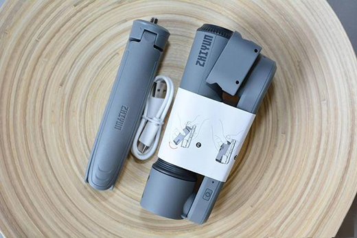拿到的這款手機(jī)云臺(tái)是出行套裝,包裝內(nèi)有一個(gè)黑色的收納包,打開(kāi)來(lái)后內(nèi)有手機(jī)云臺(tái)主體和三腳架,以及Type-C充電線和說(shuō)明書(shū)等,都被收納在固定的位置上,整體不占地方,外出攜帶也很方便。