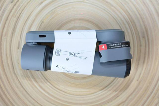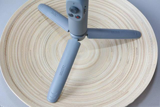手柄底部有一個(gè)1/4的通用螺孔,可與自帶的三腳架相連,這樣能在平面上拍攝更穩(wěn)。另外,還可以自己選擇掛繩,掛在手柄底部的開(kāi)孔上。