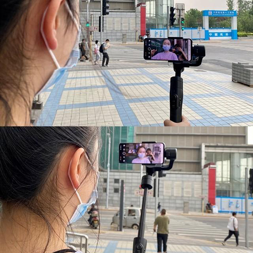 加入了延長(zhǎng)桿的設(shè)計(jì),與不延長(zhǎng)模式對(duì)比下來我們可以看到能夠拍攝出更廣闊的畫面,即使不用伸長(zhǎng)手臂也能拍攝到人物身后的畫面,在視頻中也不是一張大臉占滿大半屏幕,對(duì)于用戶來說使用感還是不錯(cuò)。