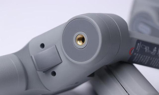 如果你想自拍或者拍攝延時攝影怎么辦呢?在穩(wěn)定器背面,還有一個1/4擴展接口,可以安裝三腳架、延長桿等配件。