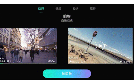 在穩(wěn)定器配套的App里面,就內(nèi)置了4大類拍攝主題,有幾十款視頻模板,你可以直接套用,跟著提示拍攝,幾分鐘就能拍出一套精彩的視頻。你可以看我發(fā)的視頻評測,里面有詳細(xì)視頻內(nèi)容。