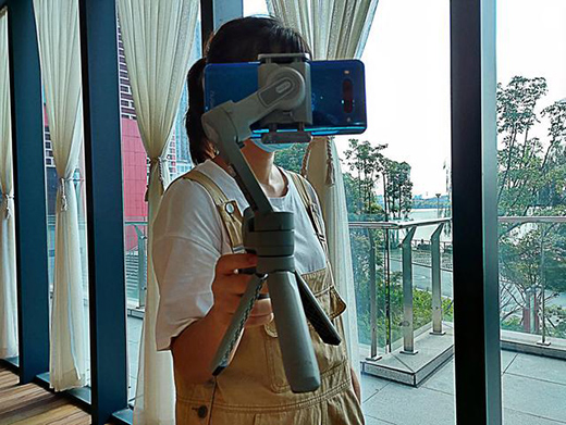 為了測(cè)試更高的防抖效果,特體驗(yàn)了一下360度的移動(dòng)旋轉(zhuǎn)拍攝,可以看到拍攝畫(huà)面流暢,完全沒(méi)有卡頓的情況出現(xiàn)。尤其細(xì)微的抖動(dòng)效果,控制得蠻不錯(cuò)。