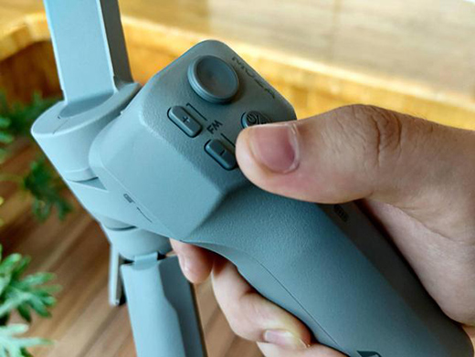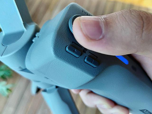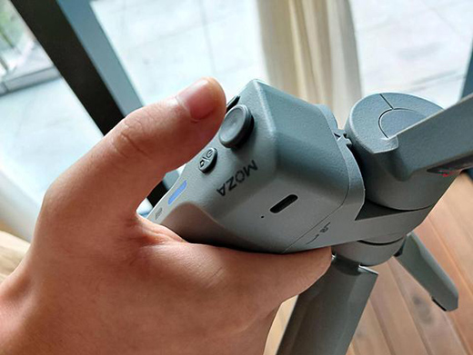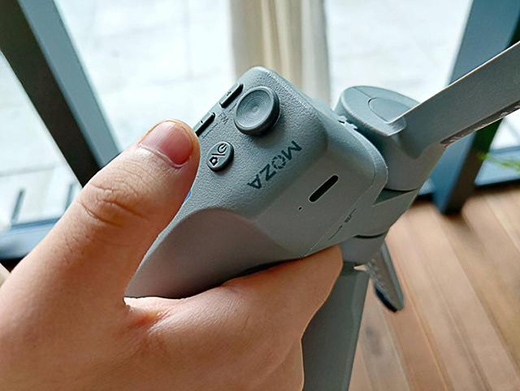 魔爪智能手機(jī)穩(wěn)定器mini MX,機(jī)身實(shí)體按鍵操控區(qū)設(shè)計(jì)有:3個(gè)按鍵+1個(gè)方向搖桿+1個(gè)扳機(jī)鍵。