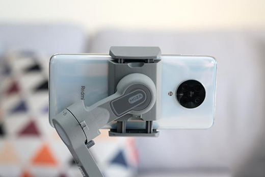 我的手機(jī)是Redmi K30 Pro,它的厚度為8.9毫米,重約218克,在不使用手機(jī)殼的情況下,可以順利地安裝在夾板上。不用太刻意讓手機(jī)居中,稍有點(diǎn)誤差也沒關(guān)系,一旦開機(jī)之后,手機(jī)夾板會(huì)自動(dòng)水平調(diào)平。夾板的手機(jī)架槽采用V型設(shè)計(jì),而且?guī)в泄枘z墊,不僅夾得牢固,而且不會(huì)刮傷手機(jī)。