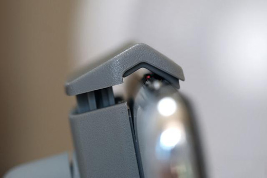 常見的手機(jī)穩(wěn)定器的1/4擴(kuò)展接口的位置幾乎都是在手柄的底部,而魔爪Mini MX則是在手柄頂部與橫滾軸交接處下方,當(dāng)安裝上三腳架之后,手柄呈傾斜狀態(tài),這樣會(huì)更便于操控,同時(shí)擺放也會(huì)更加地穩(wěn)固。