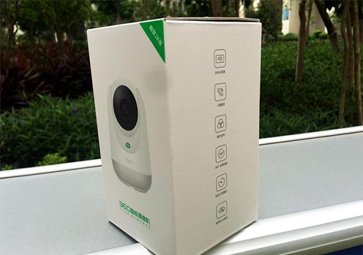 這款攝像頭采用純白色包裝盒,也是360包裝盒的一貫風格,正面是產(chǎn)品渲染圖,整體看上去非常簡潔,沒有過多元素。