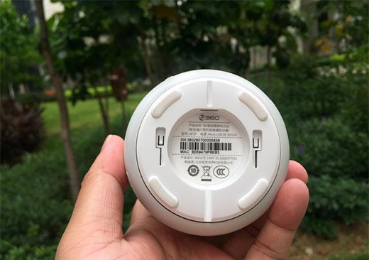 包裝背面信息相對豐富些,除了廠家信息外,還有360智能攝像機云臺5P觸聯(lián)2K版參數(shù)信息;最值得一提的是左上方有兩個二維碼,一個是360的公眾號,一個是360攝像頭智能控制APP,方便用戶掃描下載。