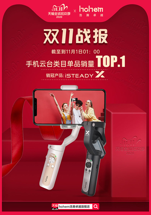 雙十一手機穩(wěn)定器黑馬誕生,浩瀚卓越穩(wěn)定器天貓銷冠