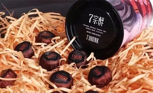 如酒心巧克力的品牌“七宗醉”,產(chǎn)品是用7種烈酒做成的酒心巧克力。
