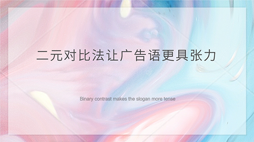 “二元對比法”的重點(diǎn)在于“二元”,通過你要表達(dá)的訴求點(diǎn),來延展、尋找?guī)矸床顝埩Φ膶Ρ仍~,然后通常是運(yùn)用關(guān)聯(lián)句式進(jìn)行串聯(lián)。