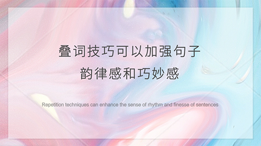 拆字法可以算是疊字法的一種特殊形式,即把前一句中的某個(gè)詞或詞組,進(jìn)行拆分加工,從而延伸出全新的涵義,給人以耳目一新的感覺。