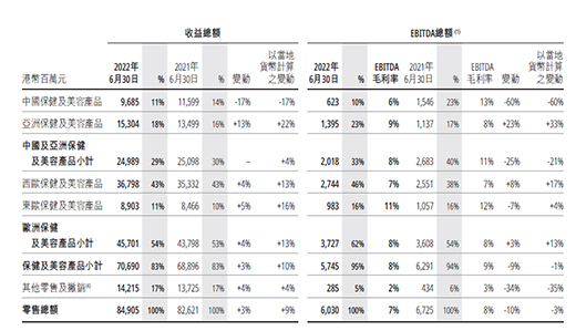 8月4日,屈臣氏母公司長江和記實業(yè)發(fā)布2022上半年財報,期內(nèi)屈臣氏中國市場銷售額為96.85億港幣(約合人民幣83.34億元),同比下降17%,同比店鋪銷售額下降17.6%。盡管受疫情影響營收下滑明顯,但屈臣氏整體仍保持盈利,上半年錄得息稅前利潤6.23億港元(約合人民幣5.36億元),為上半年為數(shù)不多沒有虧損的零售商之一。