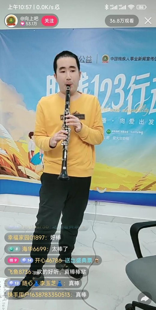 直播中,孤獨癥少年康睿就展示了他突出的繪畫天賦和對數(shù)字的高敏感度,與網(wǎng)友玩起了現(xiàn)場猜星座、猜屬相的互動,他的京劇表演以及《美麗的鮮花在開放》黑管演奏,則讓直播間的觀眾看到了特殊孩子身上的無限可能。加入“快手大V助殘公益伙伴計劃”的兩位快手百大主播也與康睿來了一場溫情連線,鼓勵他繼續(xù)堅持自己的藝術(shù)夢想。在這場愛心直播之后,他們還將去到線下看望這些孤獨癥兒童,為他們帶去更多禮物和驚喜。