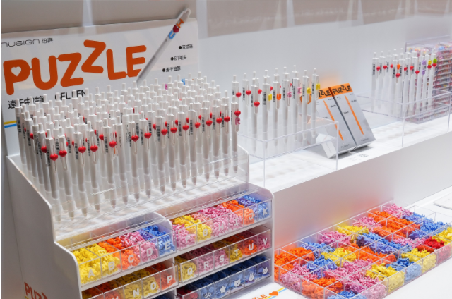 新春限定系列文具,由NUSIGN紐賽品牌00后日本設計師Kim主導設計,靈感源自風靡世界的經(jīng)典像素游戲《貪吃蛇》。色彩斑斕的mini靈蛇,在游動之間變化演繹數(shù)字“2025”,寓意新春大吉大利,生活多姿多彩。新春限定系列新品,涵蓋了本冊、書寫工具、桌面文具和紅包等多個品類。PUZZLE拼趣系列中性筆,設計元素包含不同顏色的26個字母和不同心情的7個符號,這些元素可以在筆夾處自由拼接,為生活增添驚喜與樂趣,滿足個性化情緒價值消費需求。