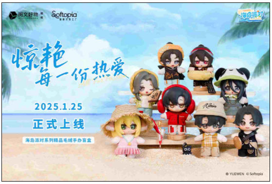 精品毛絨潮玩品牌「超級(jí)元?dú)夤S」與閱文集團(tuán)旗下衍生品官方廠牌「閱文好物」官宣聯(lián)動(dòng),攜手閱文旗下八大明星IP推出《海島派對(duì)系列精品毛絨手辦盲盒》,于2025年1月25日驚艷亮相在新加坡舉辦的Yuewen Wonderland嘉年華,并在上海、杭州、成都開啟國內(nèi)早鳥發(fā)售。