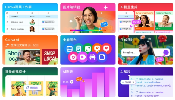 在不久前舉辦的第四屆 Canva Create 全球產(chǎn)品發(fā)布會上,Canva可畫推出了迄今為止最大規(guī)模的產(chǎn)品更新——視覺套件 2.0。此次升級引入了AI設(shè)計助手、視覺化工作表、圖表生成、批量創(chuàng)作、零代碼交互等核心功能,進(jìn)一步拓展了AI在設(shè)計與內(nèi)容創(chuàng)作中的應(yīng)用邊界,為用戶帶來前所未有的創(chuàng)作效率與表達(dá)自由。