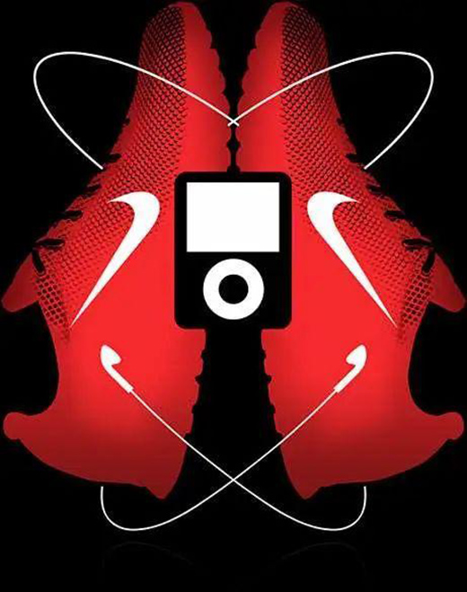 雖然,Nike+最初只是一個簡單的音樂-運(yùn)動數(shù)據(jù)系統(tǒng),2006年,耐克公司為了讓跑步更有趣,與蘋果公司合作,推出了Nike+ iPod。讓顧客可以在跑步中享受音樂,并在iPod上看到耐克鞋里的傳感器收集的步速、距離等一系列運(yùn)動信息。