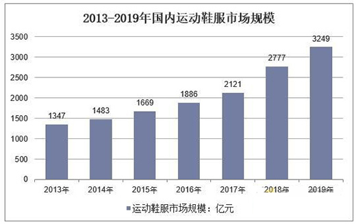 阿迪達(dá)斯、耐克等國際運(yùn)行品牌遭遇重創(chuàng)的同時,國內(nèi)疫情已過高峰期,開始得到控制,對于國產(chǎn)運(yùn)動品牌既是機(jī)遇也是挑戰(zhàn)。數(shù)據(jù)顯示,2019年國內(nèi)運(yùn)動鞋服市場規(guī)模達(dá)3249億元,同比增長17%。