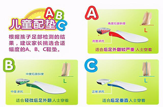 4-13歲是兒童足部發(fā)育的黃金時(shí)期,這個(gè)階段小朋友足底脂肪開(kāi)始減少,足弓逐漸成形。但由于足部發(fā)育未成熟,容易出現(xiàn)如扁平足、后足外翻等足部情況。但每個(gè)小朋友足部發(fā)育情況不同,建議買(mǎi)鞋前通過(guò)江博士3D智能驗(yàn)?zāi)_儀先驗(yàn)?zāi)_,根據(jù)驗(yàn)?zāi)_結(jié)果配置江博士A、 B、C三種不同足弓承托幅度及后跟斜度的鞋墊,有助于兒童足部保持良好的生長(zhǎng)趨勢(shì)及減少足患(扁平足)后遺癥發(fā)生的幾率。