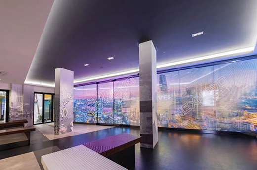亞洲第一建材展——2020年中國建博會(huì)的堅(jiān)朗展位入口處采用的晶泓NS系列,通透率>72%,在觀看影像高精度呈現(xiàn)的同時(shí),展廳內(nèi)部陳列盡收眼底,且不影響內(nèi)部采光的需求。
