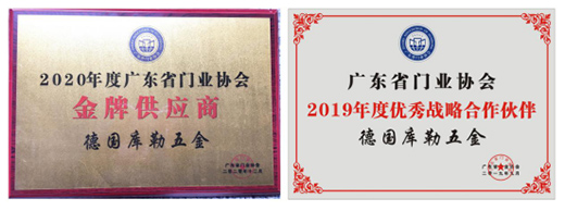 為表感恩和激勵(lì)企業(yè)對(duì)促進(jìn)行業(yè)發(fā)展所作出的重要貢獻(xiàn),會(huì)上舉辦了隆重的頒獎(jiǎng)典禮儀式,2020年各項(xiàng)獲獎(jiǎng)榜單相繼揭曉。庫(kù)勒五金被榮耀授予了2020年度廣東省門(mén)業(yè)協(xié)會(huì)“金牌供應(yīng)商”獎(jiǎng)牌。據(jù)了解,在去年的協(xié)會(huì)盛典上,庫(kù)勒五金曾獲得“2019年度優(yōu)秀戰(zhàn)略合作伙伴”稱(chēng)號(hào)。行業(yè)佳譽(yù)的持續(xù)加持,彰顯了其一路的實(shí)力壯大與奮斗不懈。