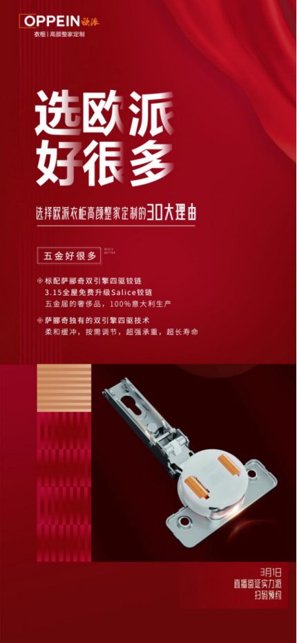 2021年12月30日,歐派衣柜正式官宣戰(zhàn)略攜手現(xiàn)代鉸鏈之父薩酈奇Salice,將奢質(zhì)五金融入高顏整家套餐,讓更多消費者可以以更優(yōu)惠實在的價格,獲得更加精致時尚的定制家居體驗。