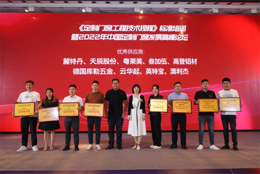 2022年9月1日,“《定制門窗工程技術(shù)規(guī)程》標(biāo)準(zhǔn)培訓(xùn)暨2022年中國(guó)定制門窗發(fā)展高峰論壇”在佛山希爾頓酒店隆重舉辦。庫(kù)勒五金受邀出席,并在頒獎(jiǎng)典禮現(xiàn)場(chǎng)榮獲“優(yōu)秀供應(yīng)商”榮譽(yù)!