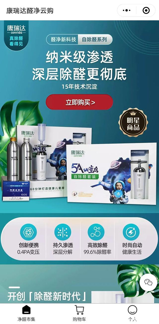 據(jù)了解,康瑞達自除醛云商城,以康瑞達除甲醛15年研發(fā)成果為基礎(chǔ),以“自除醛”套裝為主打產(chǎn)品,兼具購買、支付、分銷等功能。在平臺上,消費者不僅可以買到所需的5A兒童房自除醛套裝、4S車內(nèi)飾自除醛套裝和空氣凈化凝膠等高質(zhì)量商品,還可以申請成為推廣員,通過分享,獲得高額的分紅,實現(xiàn)雙贏。