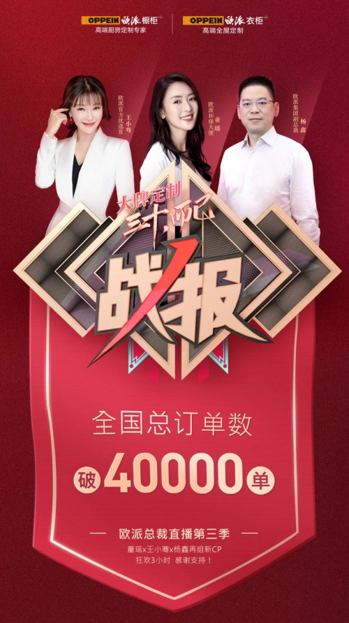 近日,歐派環(huán)保大使、歐派全球好物優(yōu)選官童瑤走進(jìn)了歐派衣柜的總裁直播間,和大家一起體驗(yàn)爆款優(yōu)質(zhì)產(chǎn)品、暢聊綠色生活方式,并密集輸出硬核內(nèi)容和勁爆優(yōu)惠。整場(chǎng)直播歷時(shí)3個(gè)多小時(shí),喜獲4萬(wàn)多訂單。
