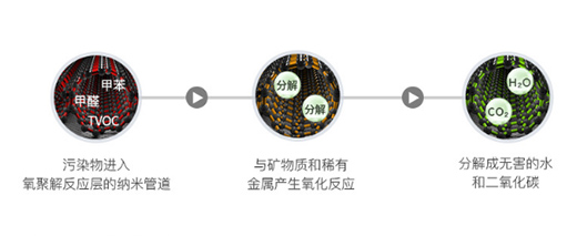 最后來(lái)到NCCO氧聚解濾芯的,基本只有甲醛等有害氣體。這些有害氣體進(jìn)入NCCO氧聚解濾芯的納米管道之后,將會(huì)與其中的物質(zhì)產(chǎn)生還原反應(yīng)并最終分解為水和二氧化碳,最終達(dá)到消除甲醛等有害污染物的效果。