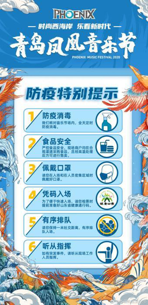 “音樂節(jié)千萬場(chǎng),安全第一條!勤洗手、戴口罩、場(chǎng)內(nèi)不扎堆,才能更好地觀演啊!”以往希望樂迷們“嗨起來”的音樂節(jié)組織者紛紛號(hào)召“有秩序地觀演”。