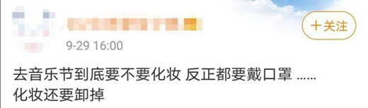 疫情之下,口罩成了參加音樂節(jié)的必須品。網(wǎng)上不少樂迷互相提醒,去音樂節(jié)蹦迪最好多備幾個(gè)口罩?!鞍踩谝弧币渤闪藰访詡儝煸谧爝叺囊痪湓?。